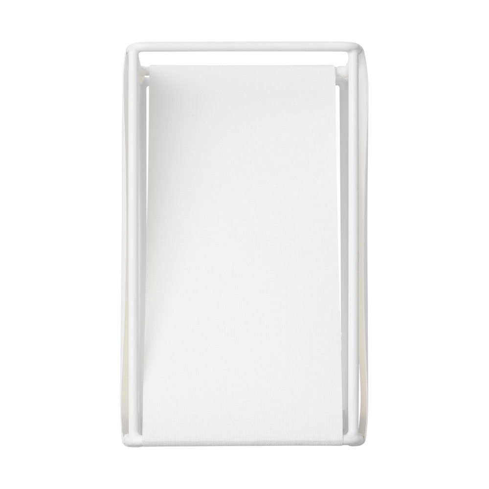 Crafted with Steel in a Soft Linen finish with white linen fabric shade
