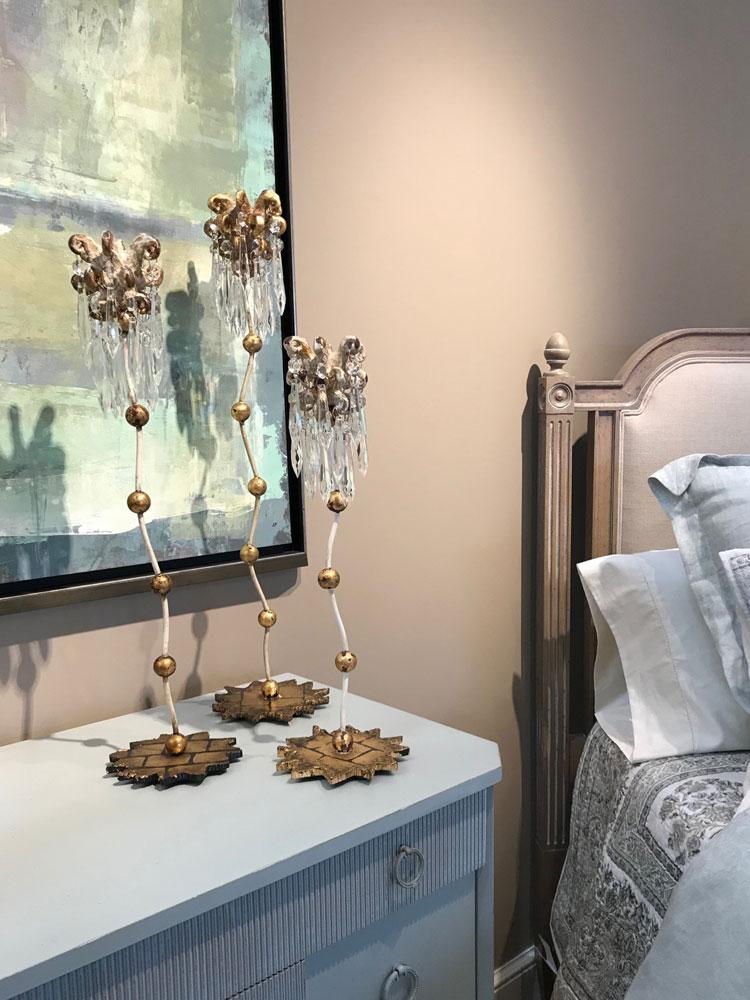 A 23" Venetian Candlestick blends whimsical chic and modern charm with painted wrought iron, sculpted bobeches, and faceted crystals. Its European flair suits dining or breakfast nooks.