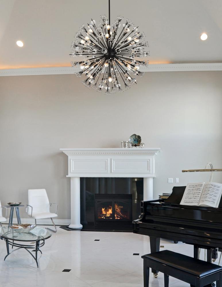 Vera 38 inch crystal starburst round pendant in black