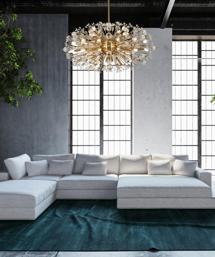 Vera 42 inch crystal starburst oval pendant in gold