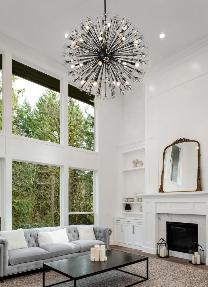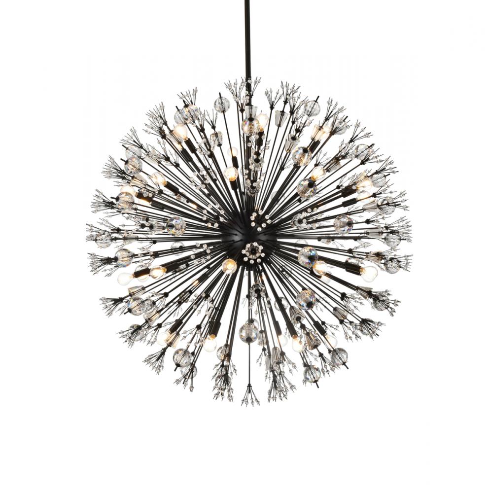 Vera 44 inch crystal starburst round pendant in black