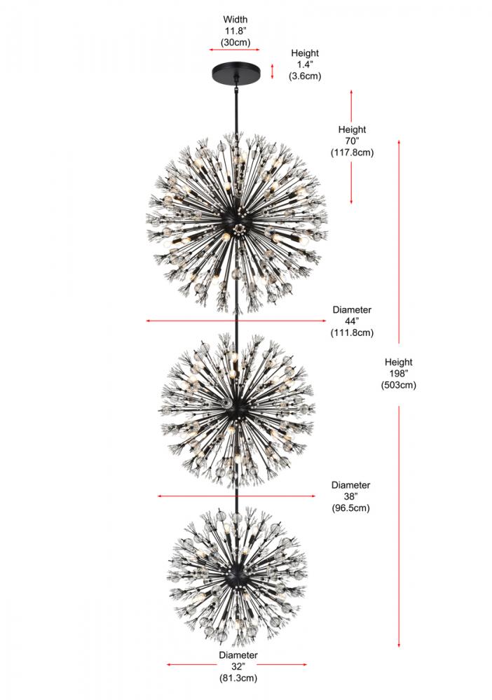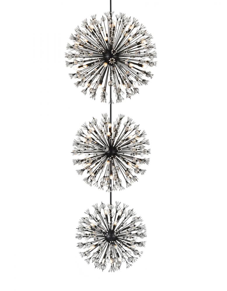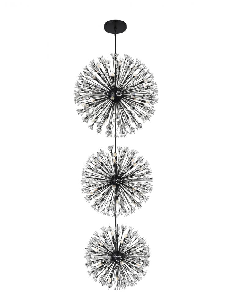 Vera 44 inch three tiers crystal starburst chandelier in black