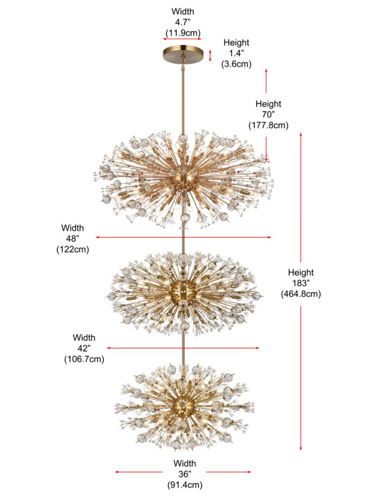 The chandelier is meticulously crafted with attention to detail, ensuring durability and longevity. Each crystal and metal rods are securely fastened to the frame.
