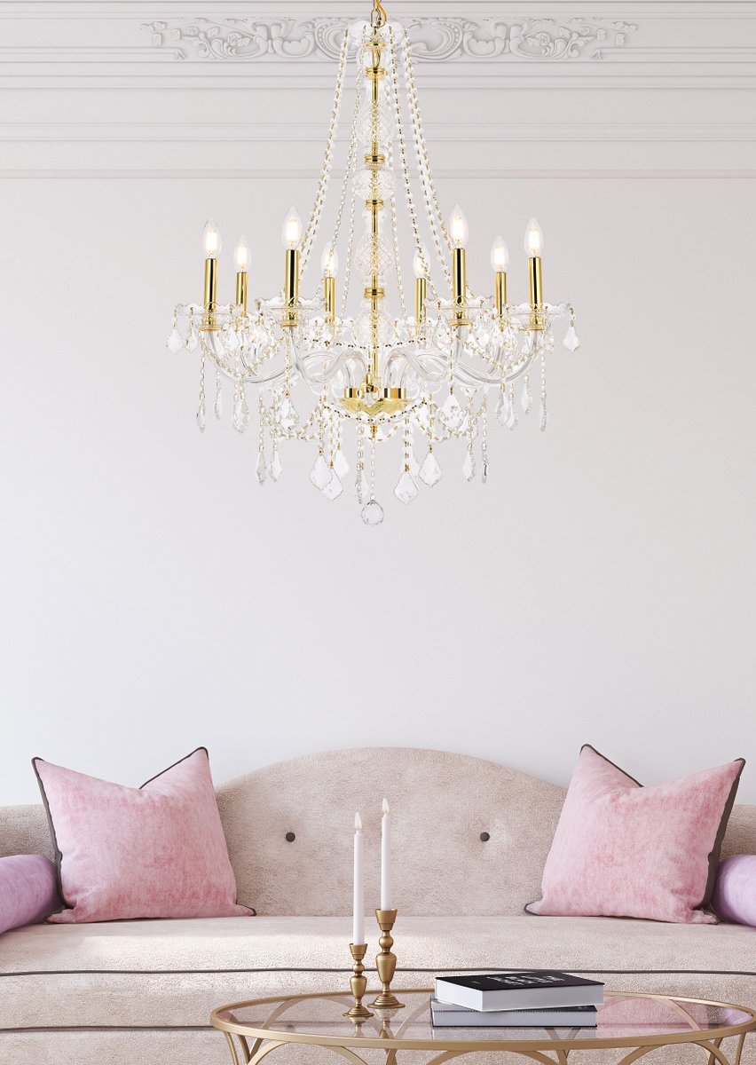 Verona 8 light Gold Chandelier Clear Royal Cut Crystal