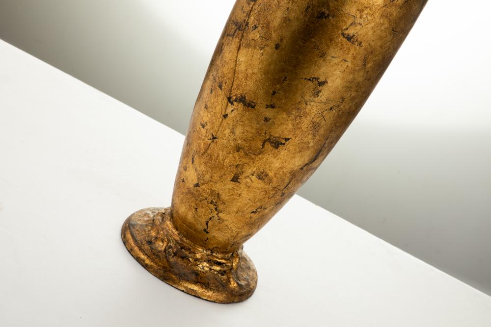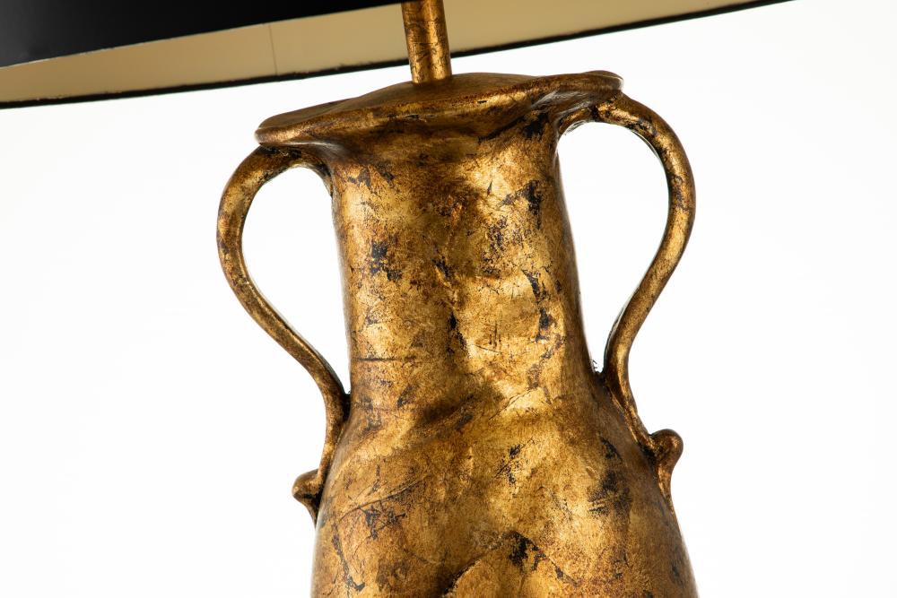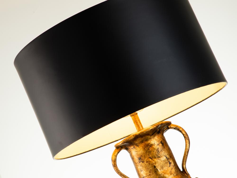 Striking a balance between sophisticated, contemporary style and eye-catching glamour, this 40" buffet lamp is beautiful yet understated. Showcasing a clean-lined cylindrical silhouette and balancing the sculpted gold leaf finish under the bulb, the strong design of black and gold helps subtly add a focal point to your space. A black Card drum shade up above completes the design, diffusing light and adding a warm golden light.