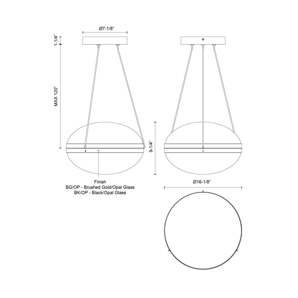 Kuzco Lighting Inc PD76316-BK/OP - Virgo 16-in Black/Opal Glass LED Pendant