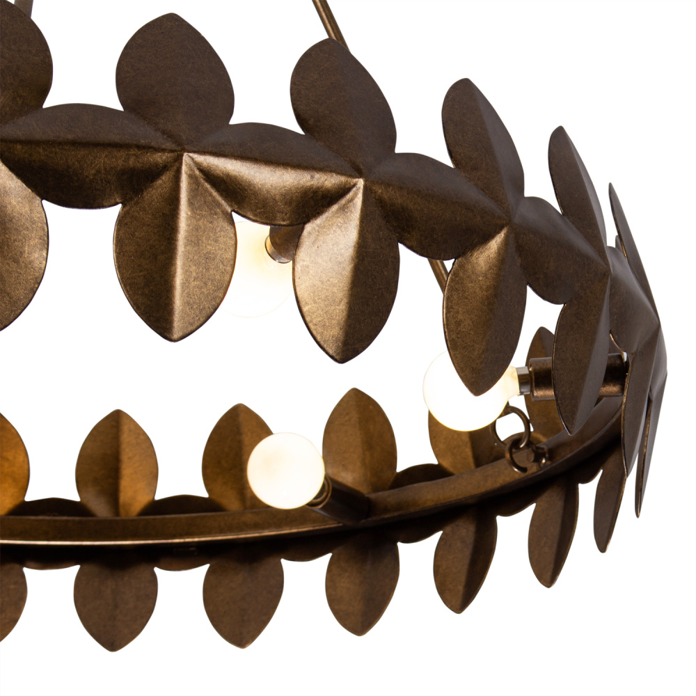 Crafted in steel by our skilled artisans, this family showcases a bold, abstract pattern in a low profile ring, paying homage to its laurel wreath inspirations. Our Pearlized Antique Brass finish (PAB) adds warmth and calmness, introducing a light and airy feel to a naturally heavy material.