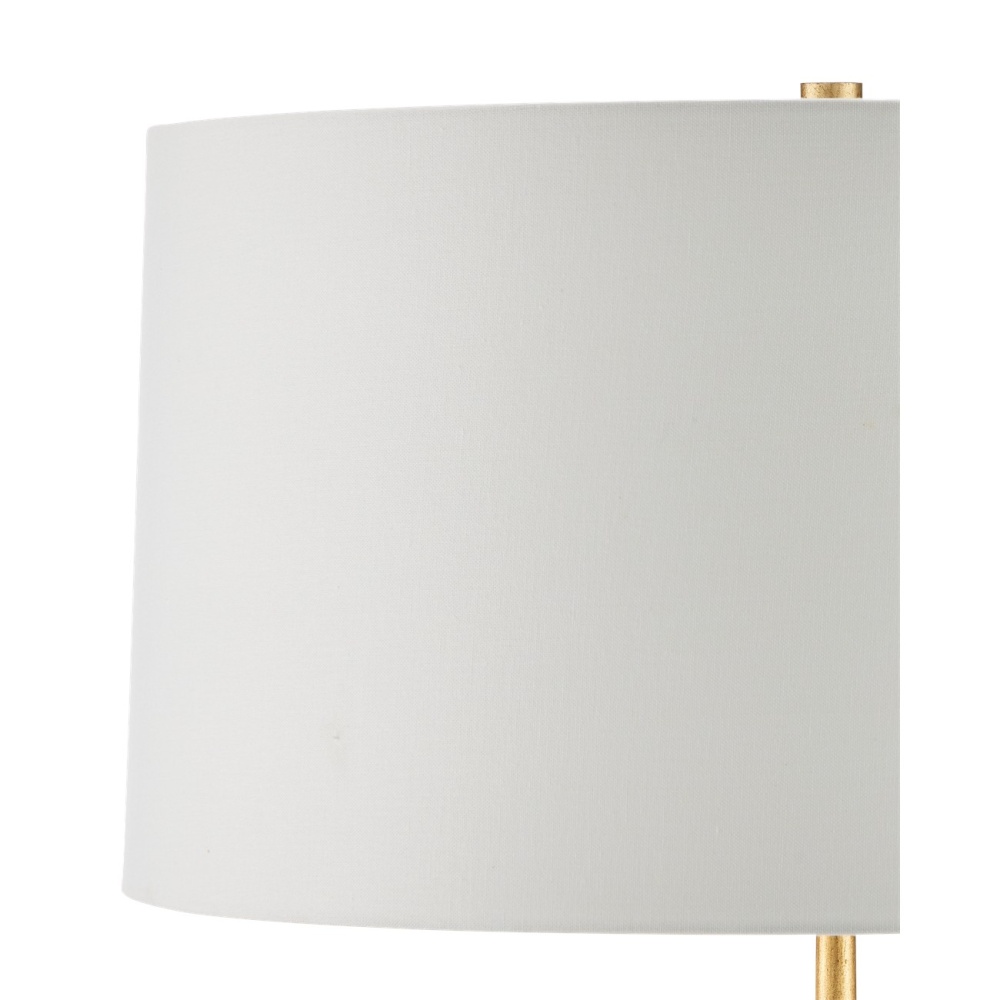 The contemporized leaves that flow around the thin stem of the Vittoria Floor Lamp were inspired by the Chinese money tree. They lift up on their stems as if they are sunning their faces in bright light. Made of metal in an antique gold leaf finish, the winsome profile rises from a disc-shaped black base