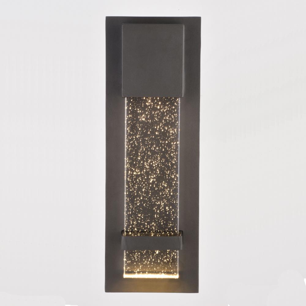 Fresh contemporary styling comes to life in the striking Wabash wall light. The beautifully suspended bubble glass is the center of attention, with a pewter backplate smartly offsetting the luminescence of the glass. An understated aesthetic gives the Wabash an appeal that any upscale home would welcome. The integrated LED sets this light apart from the rest. Ideal for your outdoor and indoor spaces where that sparkle of accent lighting is desired.