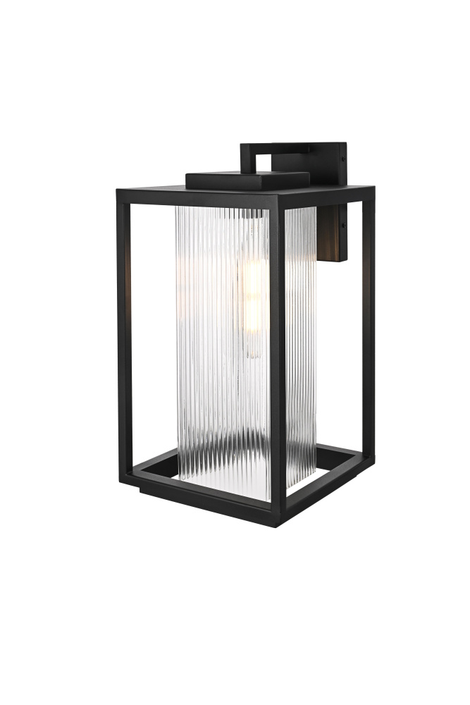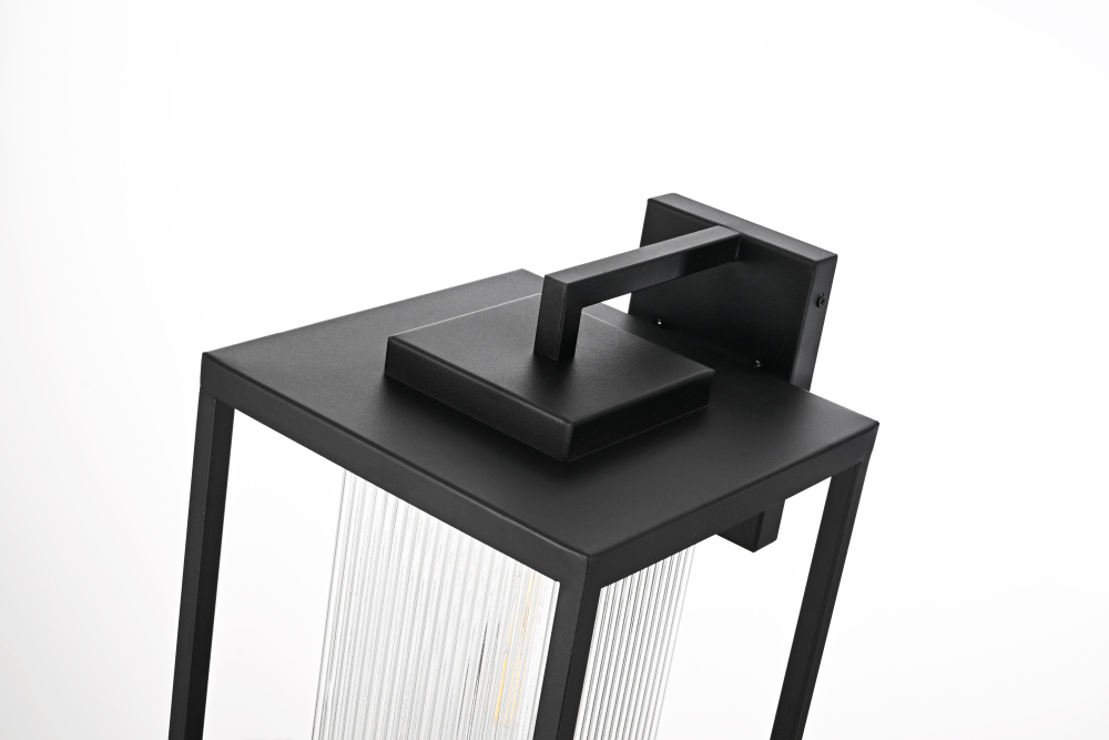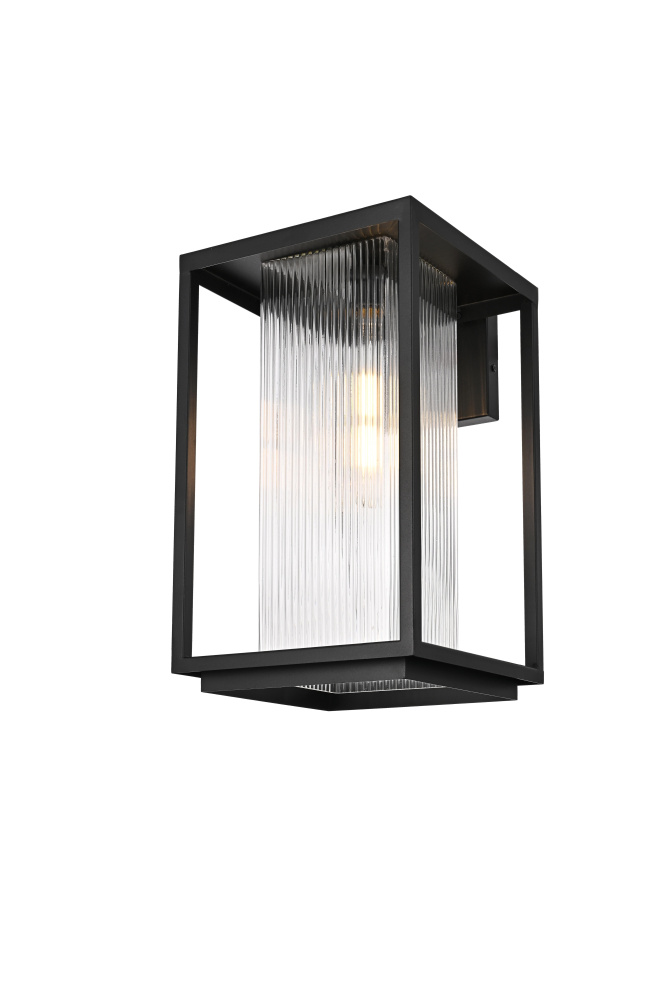 Enhance the beauty of your home's exterior with this refined outdoor wall sconce, crafted from durable iron and glass. The fluted glass design offers an eye-catching texture that diffuses light for a warm, ambient glow. Built with a sturdy iron frame, this sconce blends classic craftsmanship with modern appeal, making it the perfect addition to your porch, patio, or entryway. The clean-lined silhouette and versatile black finish make it easy to complement any style, from contemporary to traditional.