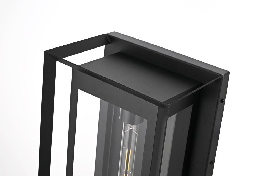 This striking outdoor wall sconce combines classic form with modern touches, crafted from sturdy iron and clear glass panels to create a sophisticated, timeless look for your outdoor space. The E26 socket offers a versatile bulb choice, while the geometric rectangular design draws attention to the beauty of its bold, open frame. The clean lines of the sleek iron structure perfectly frame the warm glow emanating from within, providing both aesthetic appeal and functional illumination. Whether flanking your front door, brightening your backyard patio, or lining your porch, this outdoor wall sconce will add style and a welcoming glow to any setting.