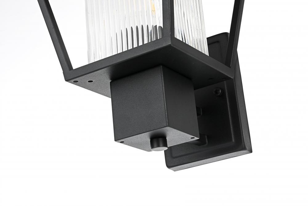 This striking outdoor wall sconce is perfect for adding style and illumination to your home’s exterior. with its iron frame and ribbed glass shade, this fixture combines durability with a touch of sophistication. The ribbed glass beautifully diffuses the light, creating an inviting atmosphere for your porch or patio. Designed with a versatile and timeless silhouette, it will complement various architectural styles. The subtle matte black finish enhances its modern appeal while maintaining a low-key yet powerful visual presence.