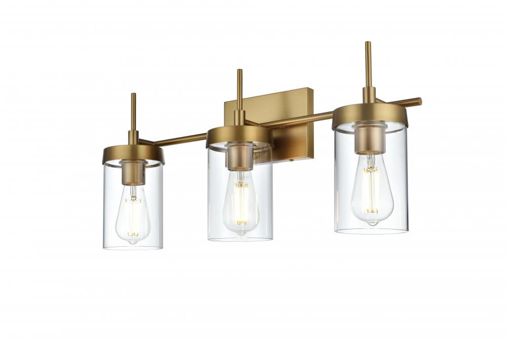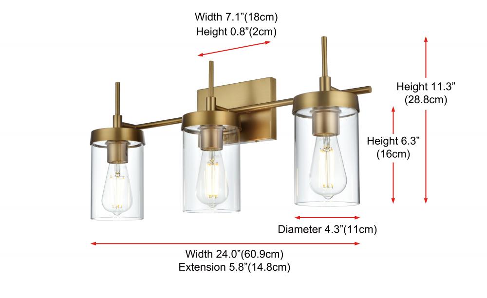 Wall sconce W24"x E5.8" x H11.3"L3 Satin Gold frame with Clear glass