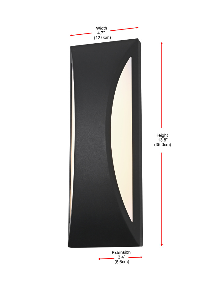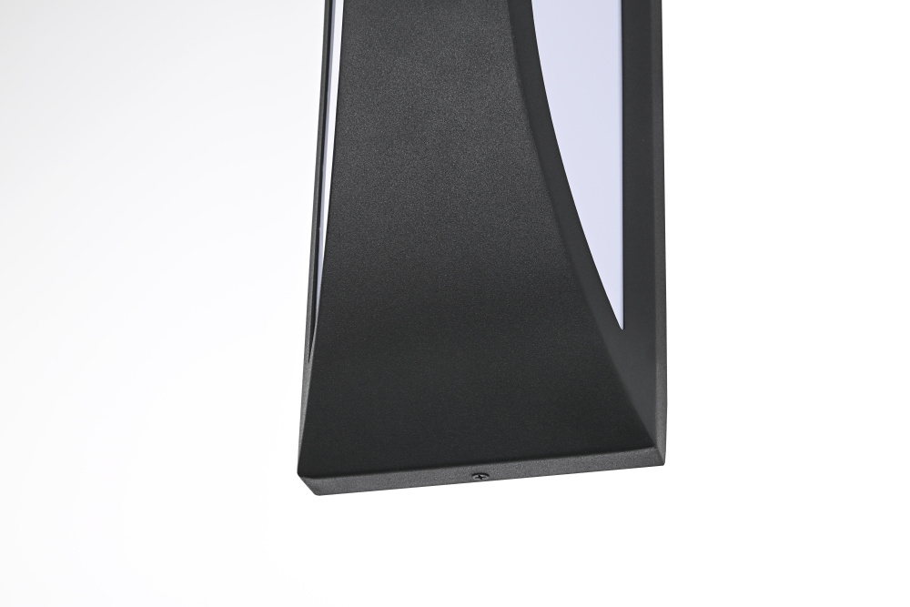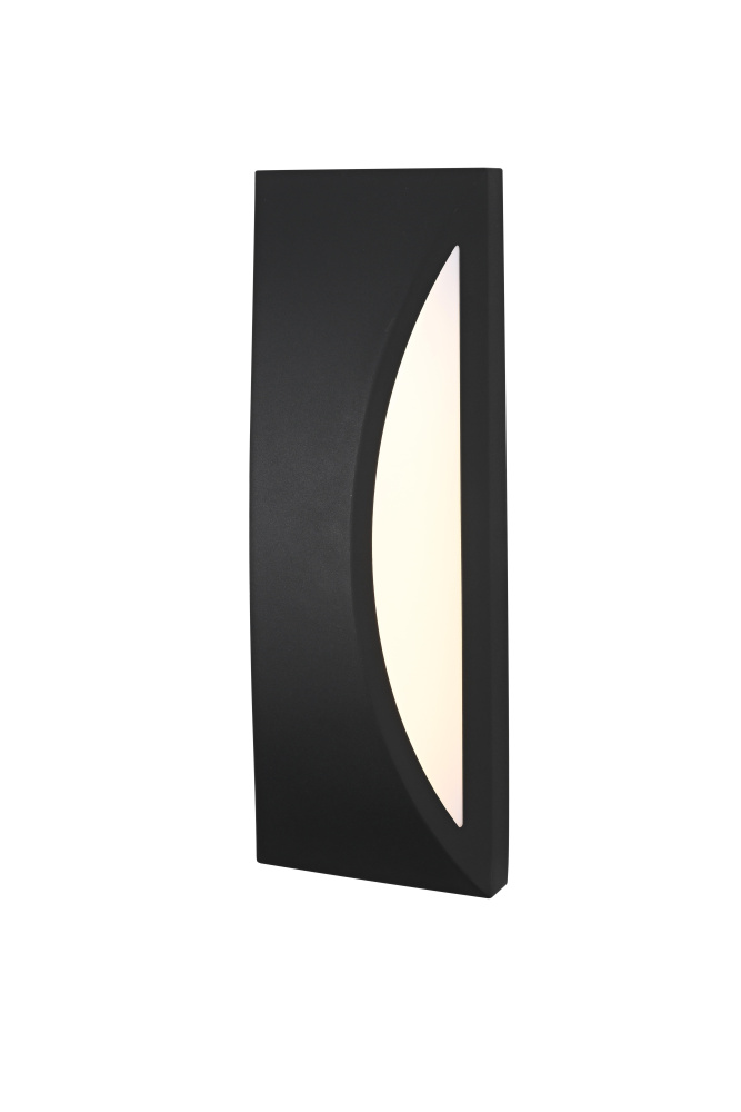 Sleek, sculptural, and effortlessly modern, this LED outdoor wall light is designed to make a statement. Crafted from durable iron and aluminum with a smooth black finish, it features a distinctive curved form with dual light openings for a captivating glow. The integrated 8W LED emits a warm 3000K light at 190 lumens with an 80 CRI, ensuring both energy efficiency and optimal brightness. Its white acrylic diffuser softens the light, creating a beautifully balanced illumination effect. Designed for flexibility, this fixture can be mounted either vertically or horizontally, allowing you to customize its placement to fit your exterior vision. Wet rated for outdoor durability, it's perfect for patios, entryways, and exterior walls, bringing a refined architectural touch to modern spaces.