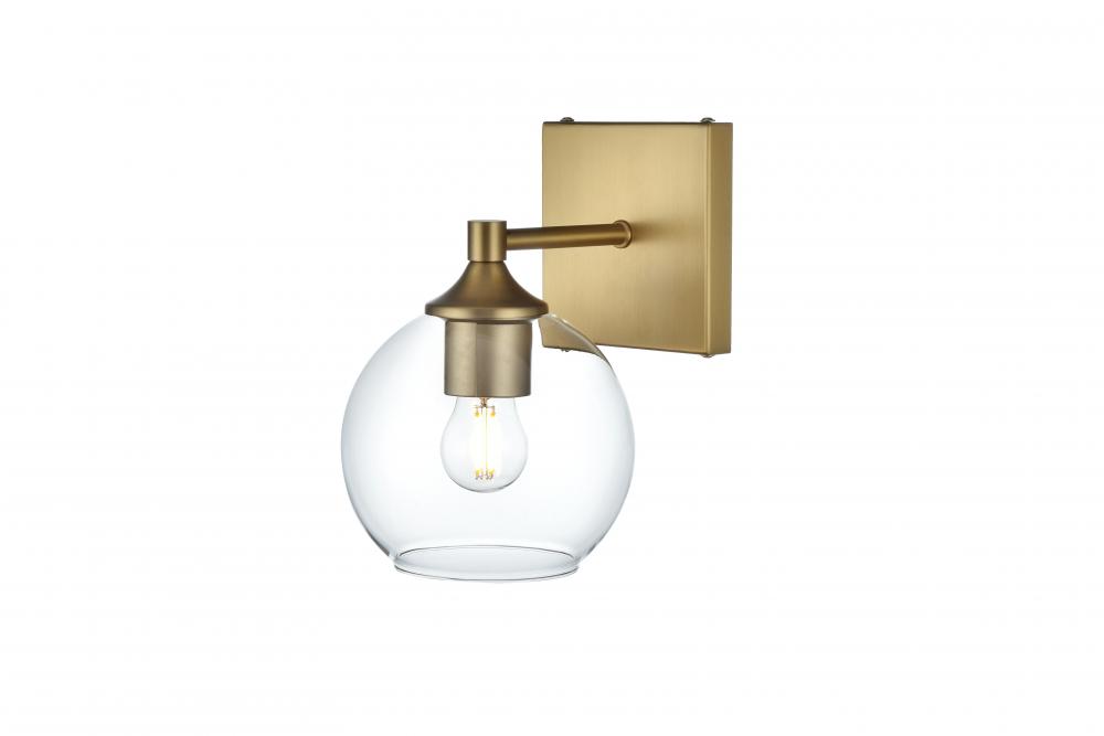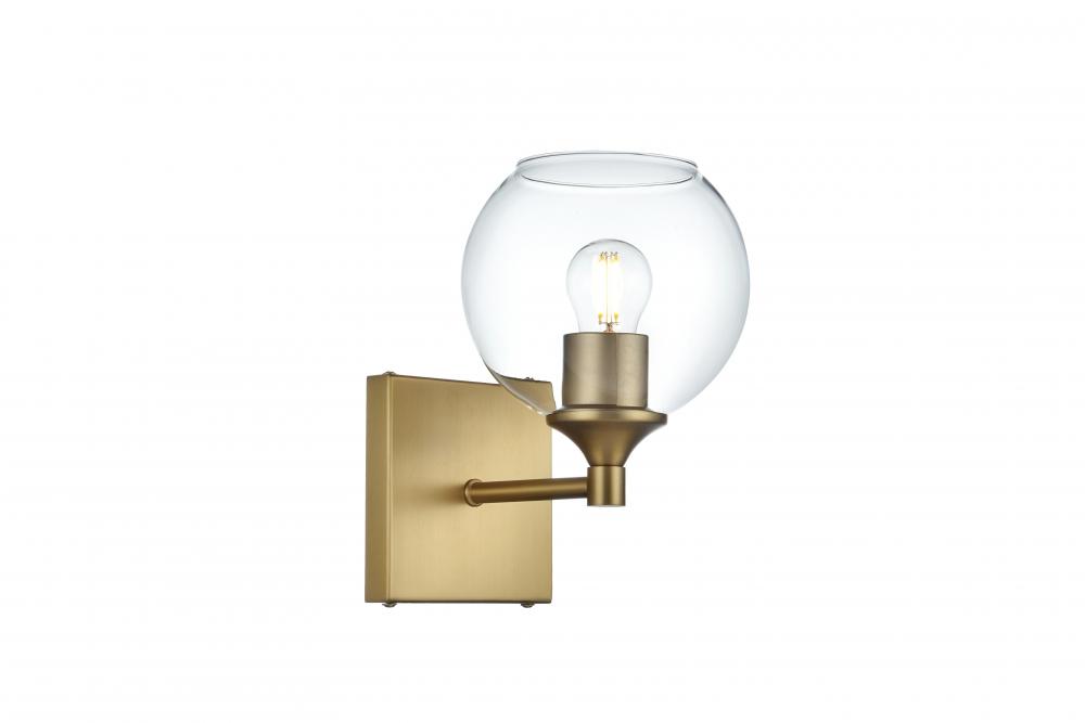 Wall sconce W5.9"x E7.6" x H8.9"L1 Satin Gold frame with Clear glass