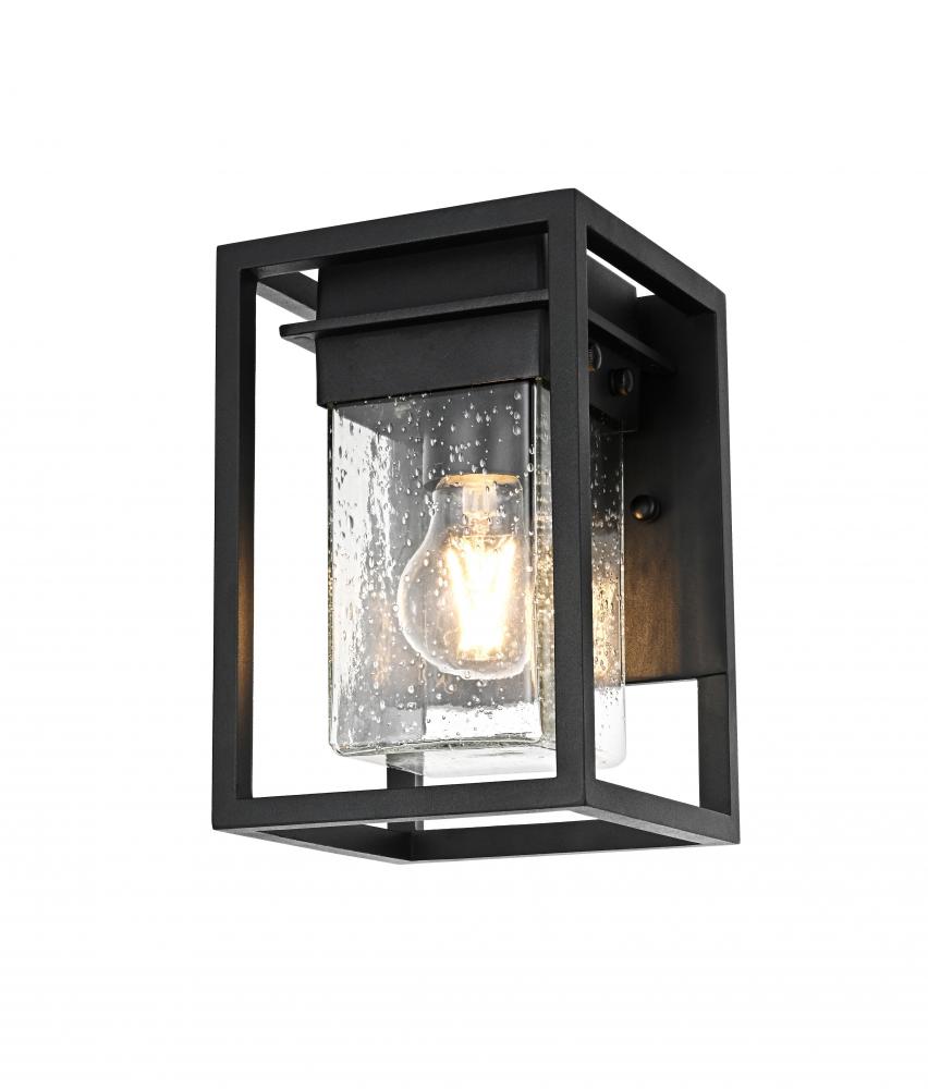 This striking outdoor wall sconce combines classic form with modern touches, crafted from sturdy aluminum and clear glass panels to create a sophisticated, timeless look for your outdoor space. The E26 socket offers a versatile bulb choice, while the geometric rectangular design draws attention to the beauty of its bold, open frame. The clean lines of the sleek aluminum structure perfectly frame the warm glow emanating from within, providing both aesthetic appeal and functional illumination. Whether flanking your front door, brightening your backyard patio, or lining your porch, this outdoor wall sconce will add style and a welcoming glow to any setting.