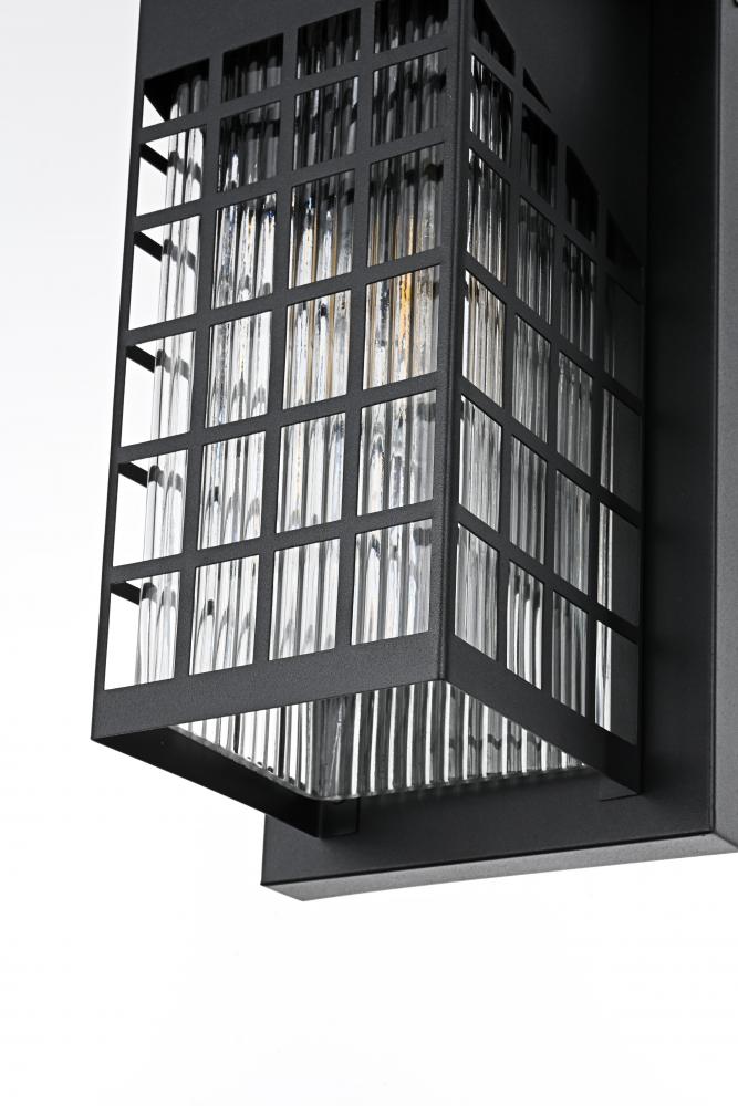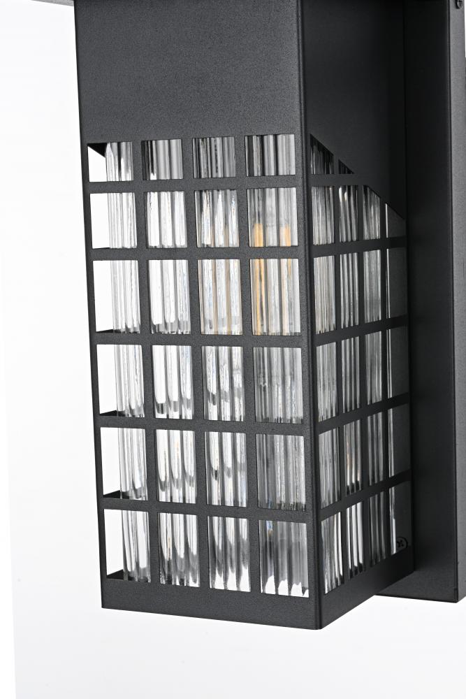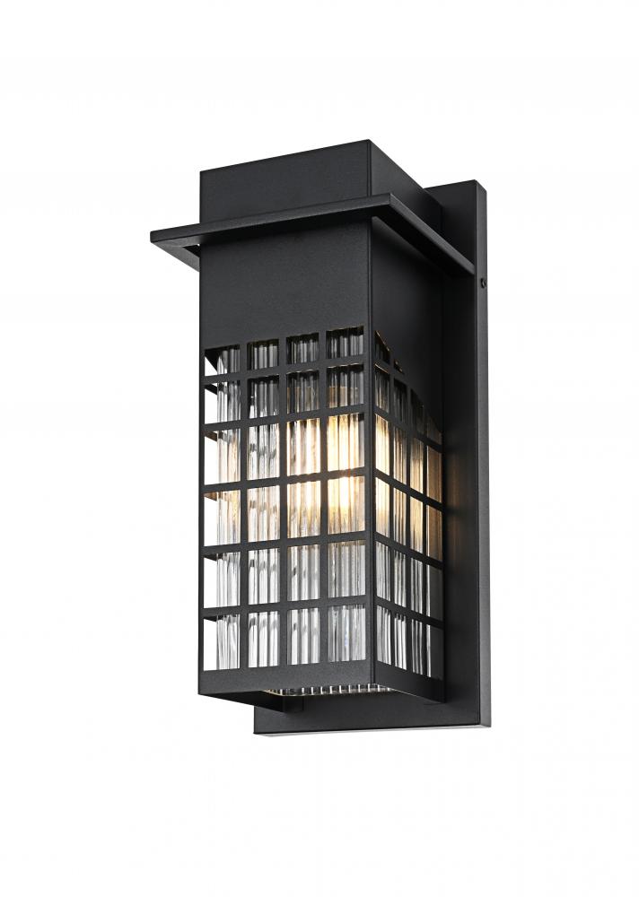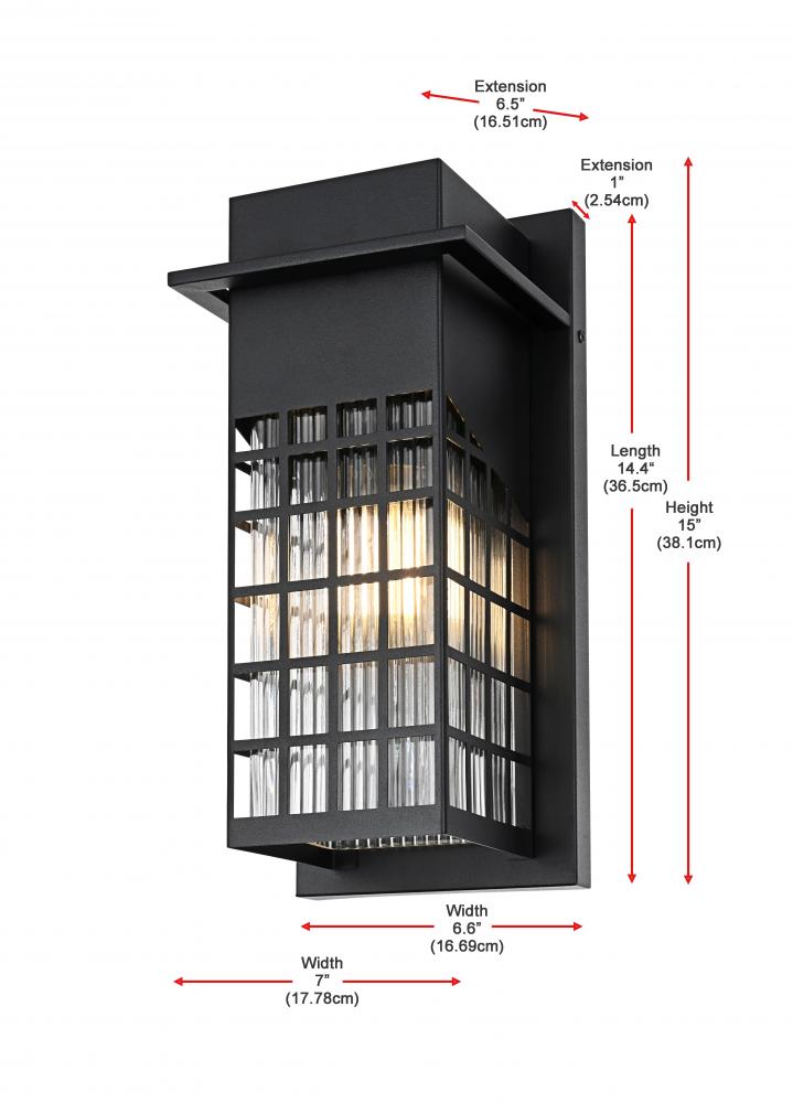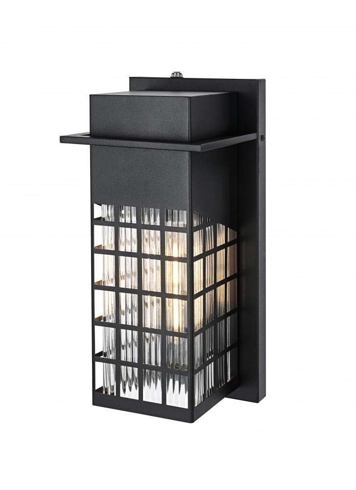 Transform your outdoor space with this captivating outdoor wall sconce, featuring a robust iron and glass construction that is perfect for any modern aesthetic. The sophisticated grid-patterned design of the iron frame showcases the beautiful glow of the light inside, while the clear glass panels with unique textures add an element of charm. Designed to withstand outdoor elements, this wall sconce is a seamless blend of style and durability, providing a warm and inviting glow to your entryways, patios, or gardens. with an E26 socket, it can accommodate a range of bulbs, making it adaptable to suit your lighting preferences while enhancing the overall appeal of your outdoor area. The built-in dusk to dawn sensor ensures that your home remains well-lit at night while saving energy during the day by automatically turning the light off at sunrise.