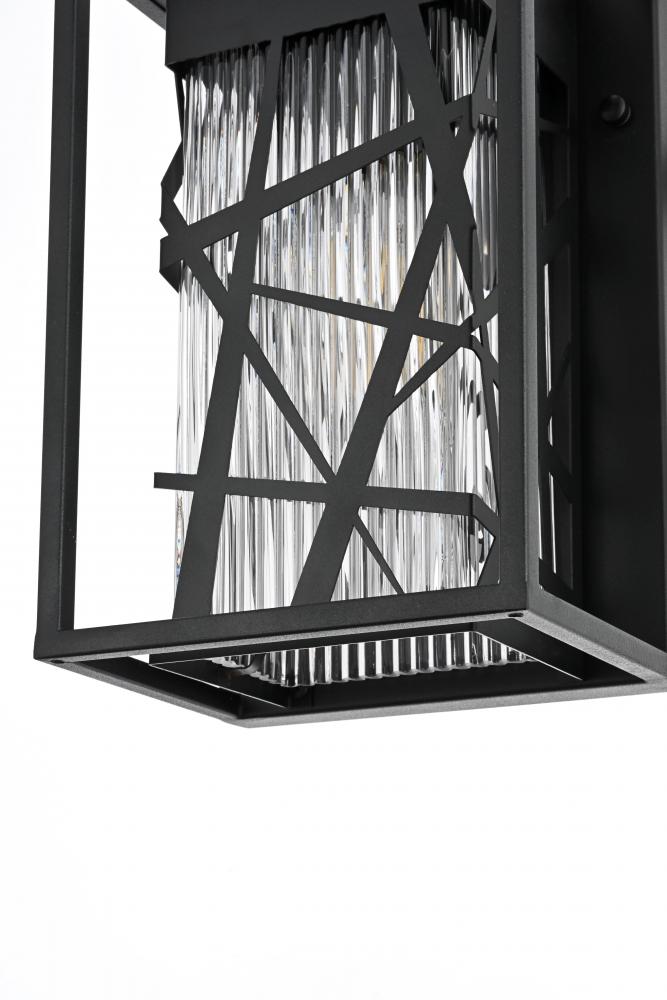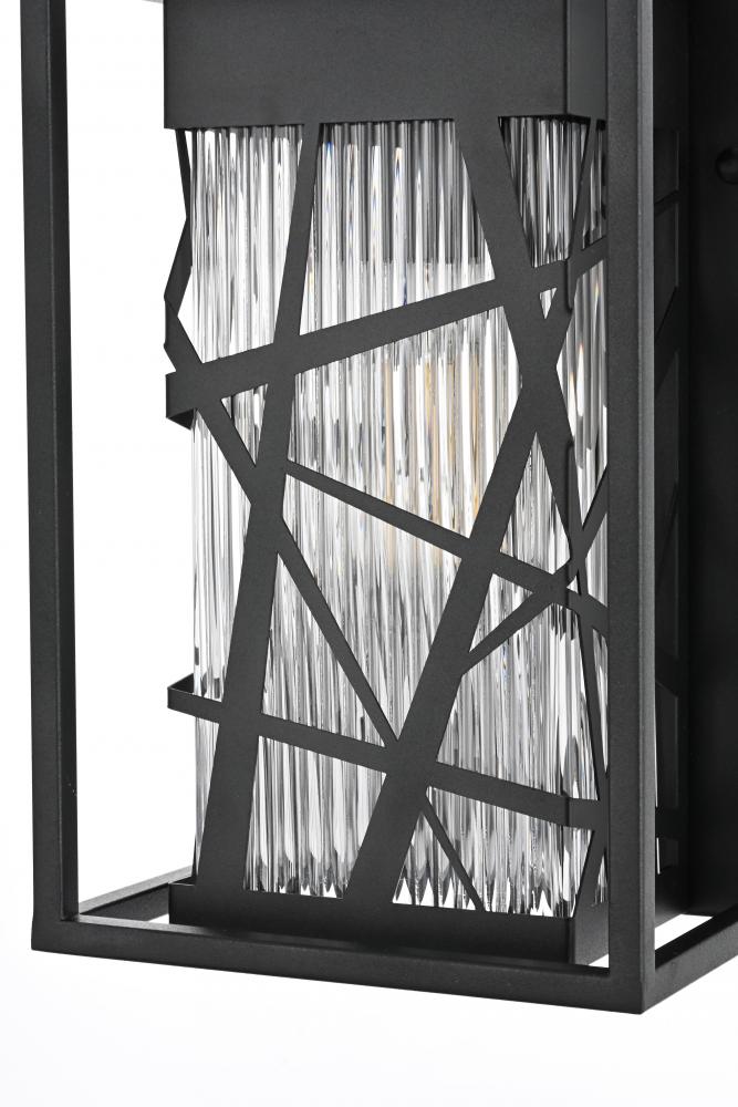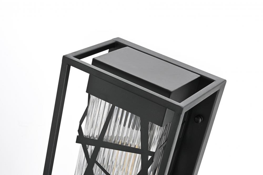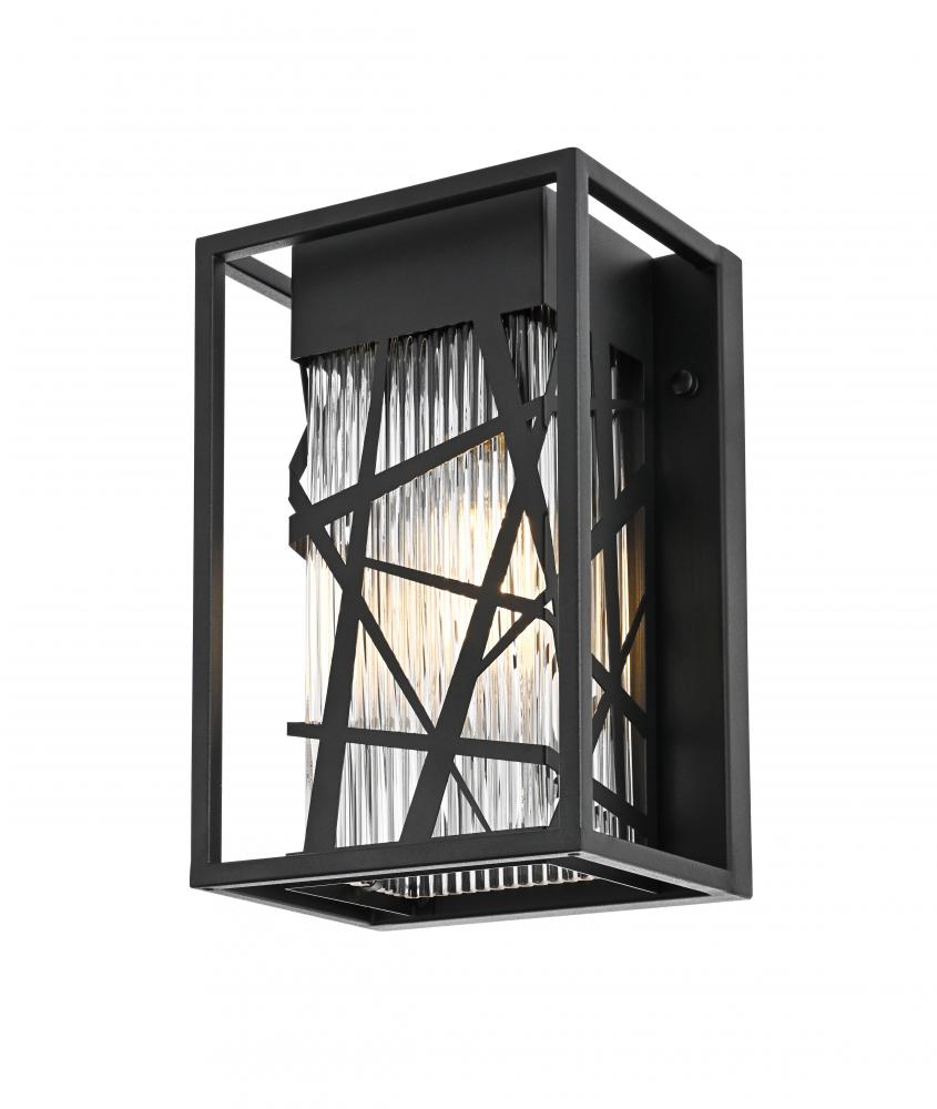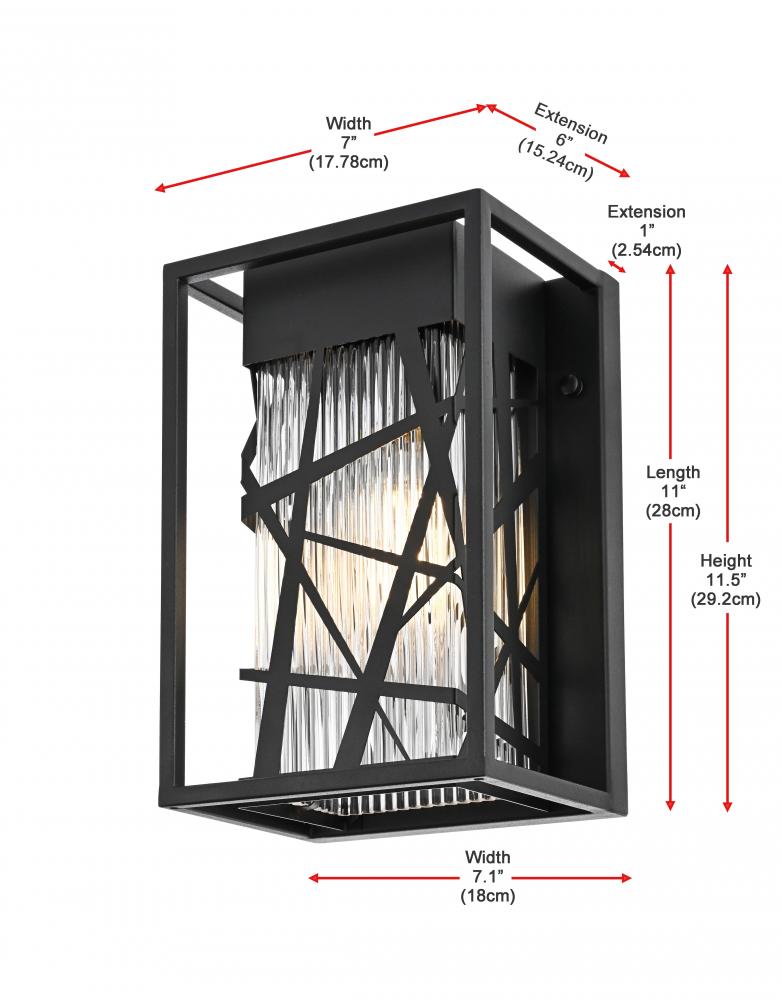 This modern outdoor wall sconce offers a striking visual appeal, combining an industrial iron frame with creative geometric detailing to provide a contemporary look that stands out. Featuring an E26 socket, this sconce is not only built for style but also functionality, offering versatility with different light bulbs. Its textured glass panels beautifully diffuse light to create an inviting ambiance, perfect for porches, patios, or entryways. The rugged iron construction is crafted for durability, while the unique lattice pattern on the frame enhances its aesthetic appeal. Bring a bold and modern accent to your outdoor spaces with this robust, artistic wall sconce that merges utility with undeniable architectural beauty.