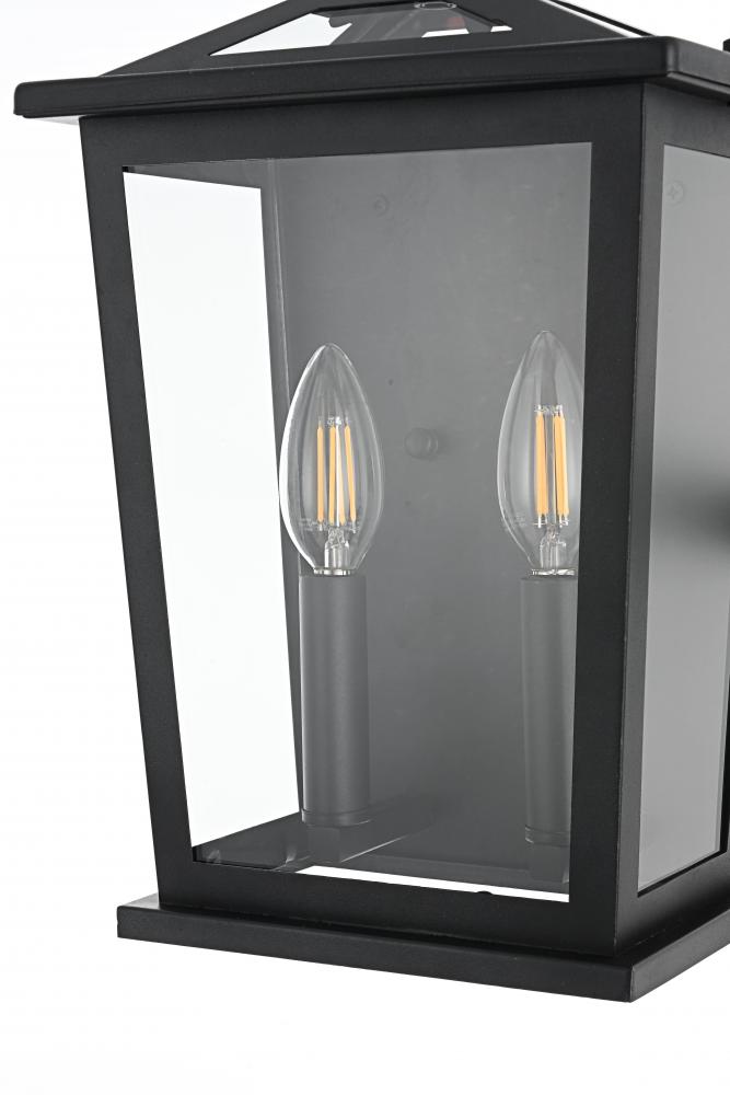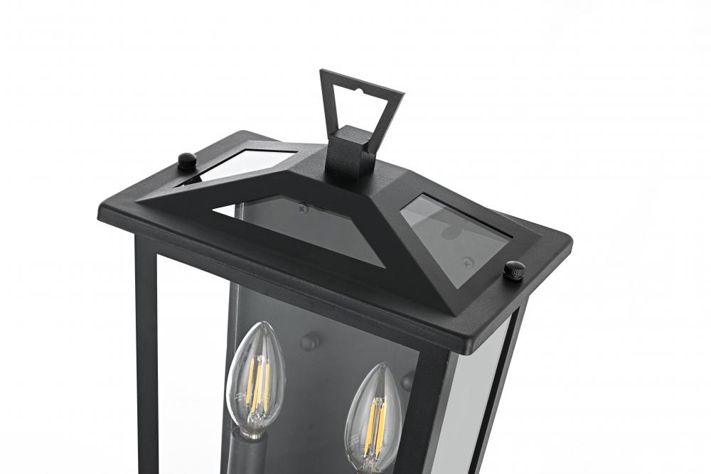Add a timeless appeal to your exterior with this sophisticated outdoor wall sconce. Crafted from sturdy iron and glass, this wall sconce features a classic lantern-inspired design with clean lines and clear glass panels that add both form and function to your outdoor space. Its matte black finish beautifully contrasts with the bright glow from the E12 bulb, creating a warm and welcoming ambiance for any entryway, porch, or patio. The open base design ensures effortless bulb replacement while the robust materials provide durability, even in changing weather conditions. This wall sconce is perfect for those who want to enhance their outdoor decor with a fixture that showcases both contemporary charm and vintage flair.
