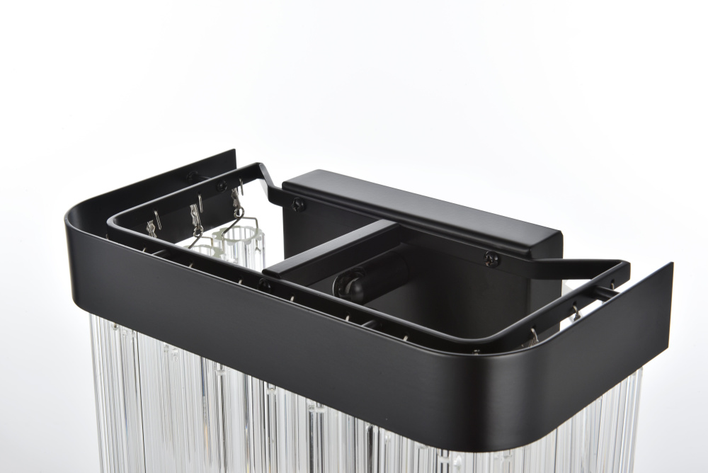 The black finish pairs strikingly with the shimmering glass, creating a bold contrast for moody, luxurious interiors.
