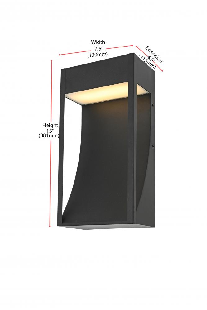 Bring a bold, contemporary vibe to your outdoor spaces with this striking LED wall light. Built from durable iron and frosted glass, it features a sleek rectangular frame with a subtly curved interior design that adds depth and character. The integrated 15W LED produces a warm 3000K glow at 545 lumens, creating a beautifully balanced ambiance while being energy-efficient. Its frosted glass panel ensures the light is diffused softly for a comfortable glow. with a weather-resistant design, this wall light is ready to enhance your patios, pathways, or modern facades with style and practicality.