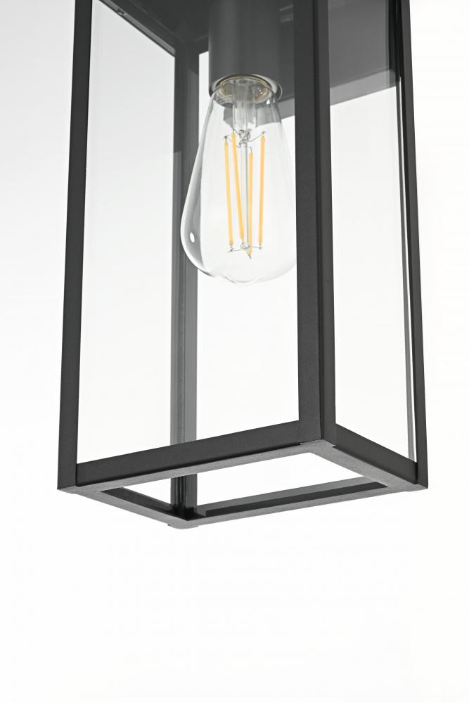 Designed with four clear glass panels to provide maximum light visibility while showcasing a striking light bulb
