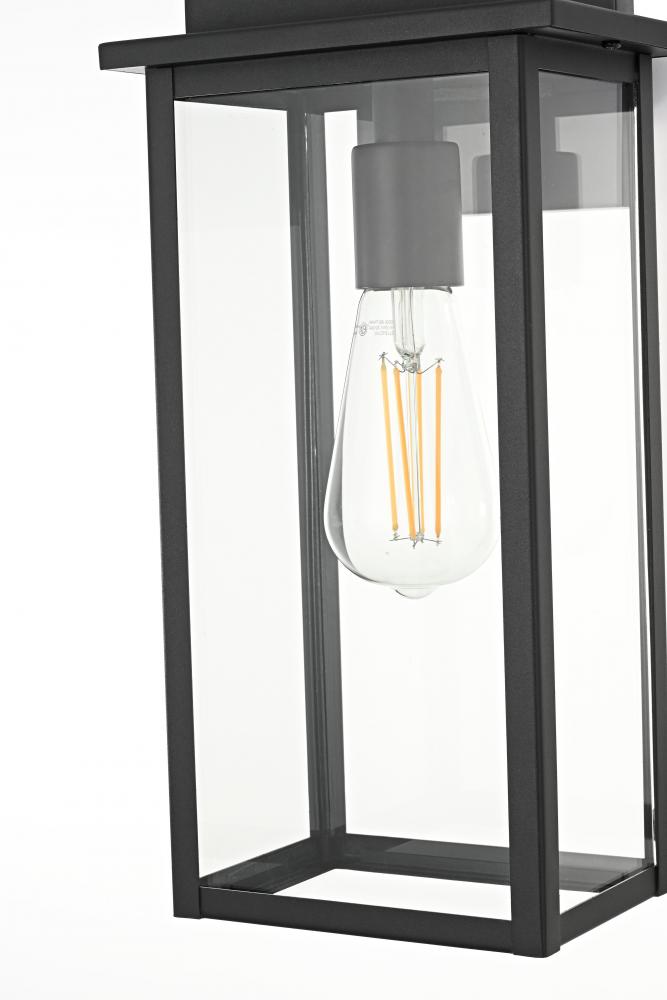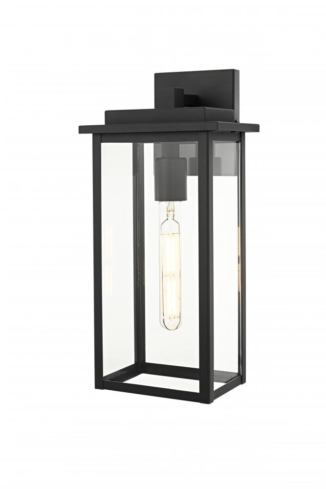 Transform your outdoor spaces with this stunning modern wall light, crafted for both style and functionality. Featuring a sleek, rectangular frame made of sturdy iron and finished in a versatile black, this light blends well with a wide range of exterior designs, from modern to transitional. The clear glass panels offer maximum illumination, showcasing the bulb and adding visual interest to your outdoor area. with a wet label rating, this wall light is designed to withstand direct exposure to rain, making it a durable choice for patios, porches, and gardens. The minimalistic backplate provides secure mounting, and the open-bottom design ensures easy bulb changes and low maintenance. with its single E26 socket, you can personalize the look with your choice of bulb (sold separately). Elevate your home's exterior and create a welcoming glow with this modern outdoor wall light that perfectly balances form and function.