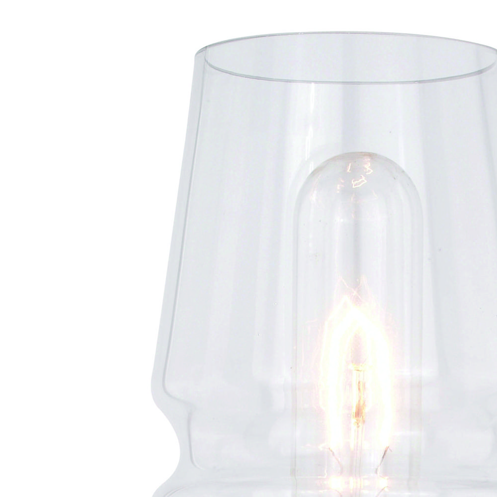 Clear glass provides bright illumination and a mid-century modern feel