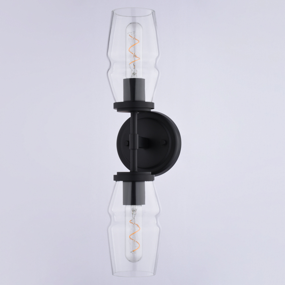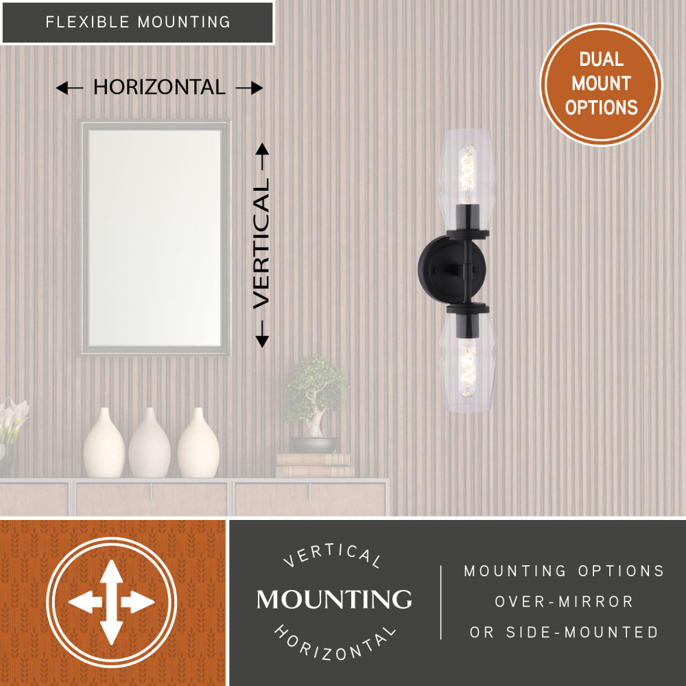 Bring a touch of mid-century modern glamour to your bathroom with the Warren vanity light. The elongated silhouette and chic, clear glass shades offer a contemporary twist on a classic design. The matte black finish adds a touch of sophistication, making it a perfect choice for an on-trend bathroom upgrade. Enjoy installation flexibility with its dual mount capability – hang it vertically or horizontally to suit your space. Add this vanity wall sconce light fixture to any bath, hallway, or bedroom for an on-trend update.