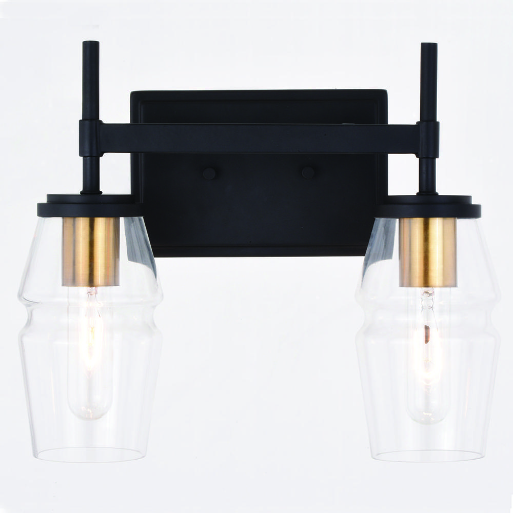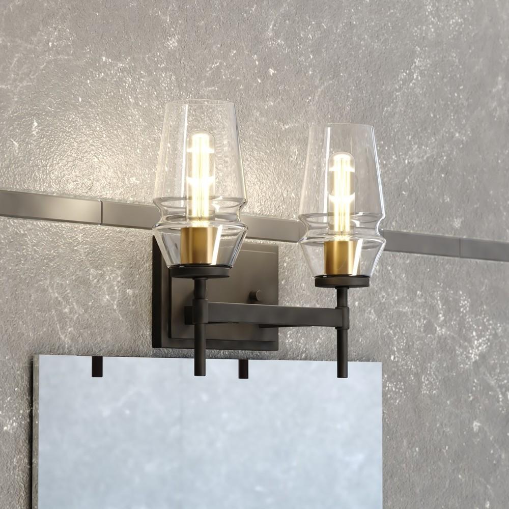120 Volts Arm Armed Bath Bathroom Bathroom Light Black Brass Brushed Clear Cylinder Damp Dimmable Down Edison Filament Glass Gold Hardwired Incandescent Indoor Interior LED Compatible Lighting Matte Medium Metal