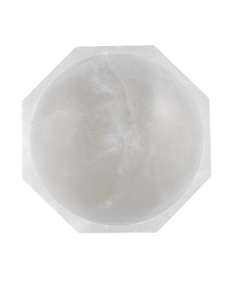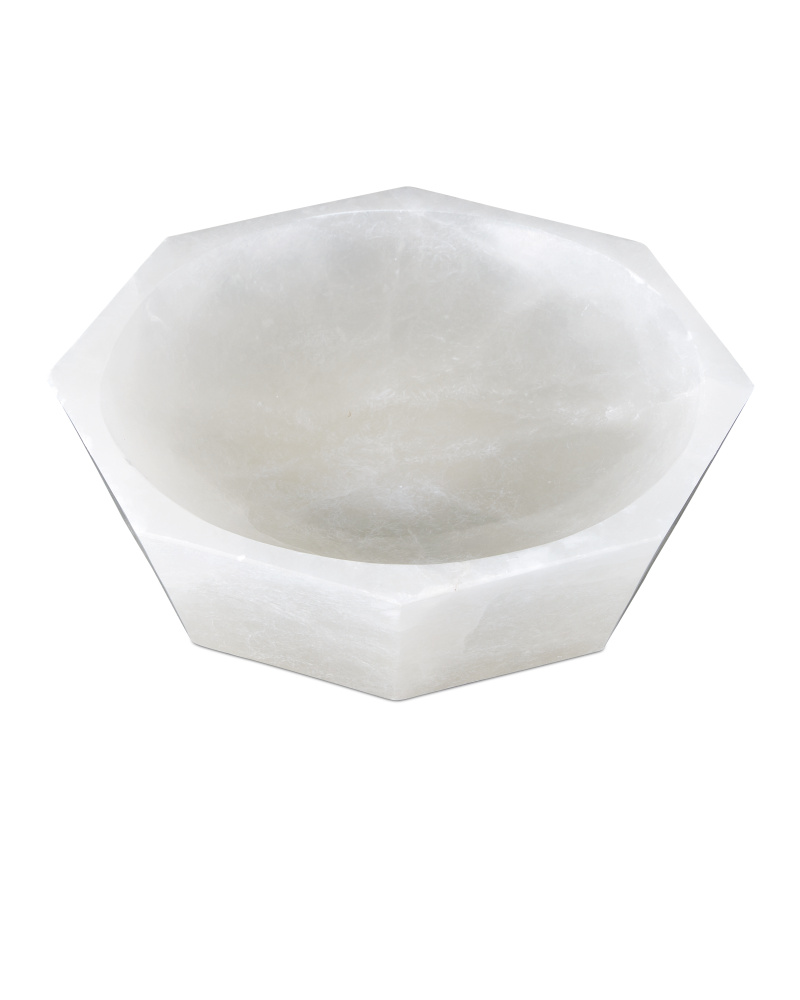The Waystone Bowl is a luminous white decorative bowl made of natural alabaster. The prized material has been hollowed out and carved into an octagonal shape as the stone was smoothed. This alabaster bowl is perfect for displaying decorative objects like colorful glass balls or left to shine on its own.