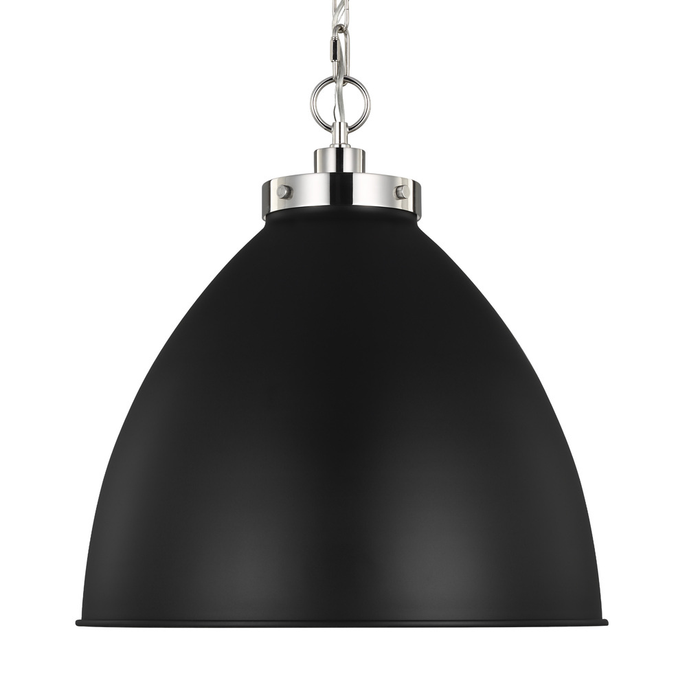 Inspired by various classic utility silhouettes - from factory lighting to barn sconces - capped by contrasting metal hardware. Each shade of the Wellfleet series by Chapman & Myers is available multiple sizes of 3 versatile profiles; either a flat farm dome, a traditional factory dome, or tapered cone. The shades are available with either a black or white finish and are paired with either a burnished brass or polished nickel collar, chain and canopy.