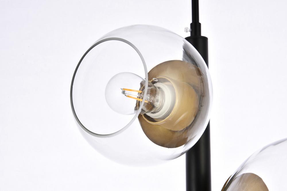 Wells 18 inch pendant in black and brass with clear shade