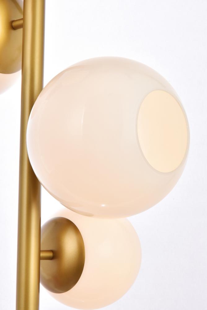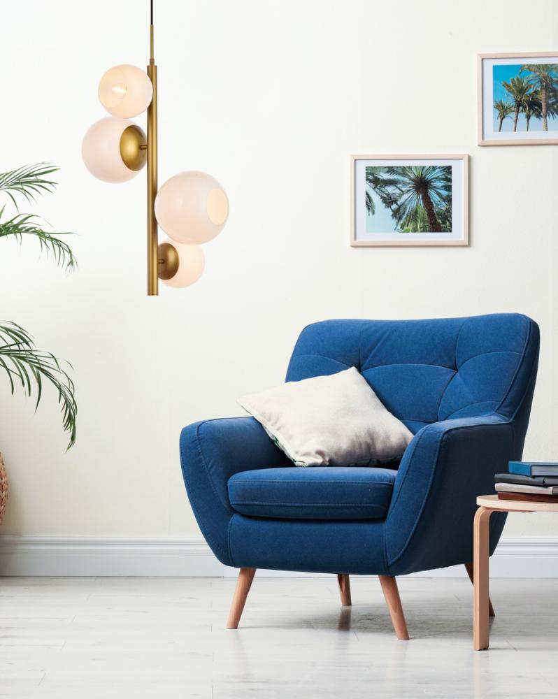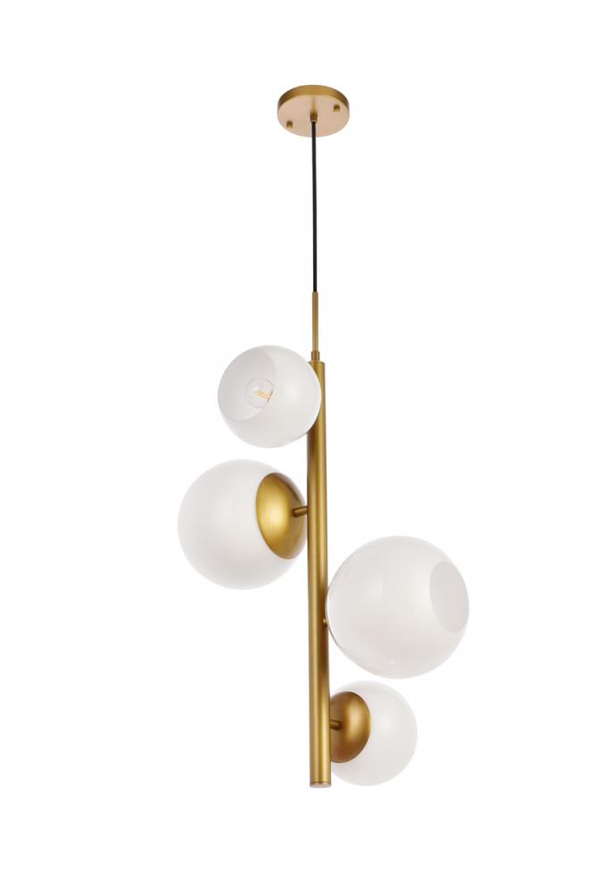 This 4-light modern linear chandelier adds a major mid-century modern style without taking up any valuable floor space. It's made from metal and features a cylindrical shaped body that supports four glass globe shades that diffuses the light from a 40W bulb (not included). This light arrives with an adjustable fabric cord and is dimmable.
