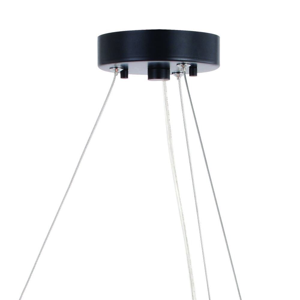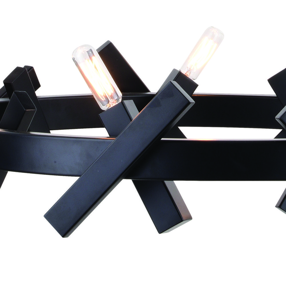 The Wells collection is a playful accent to any contemporary or industrial space. The X pattern dances around a circular wagon wheel frame. Discreet cables suspend the fixture from a ceiling mounted metal canopy. A strong matte black finish completes this look. Wells is the perfect addition to any dining, living space or entryway.