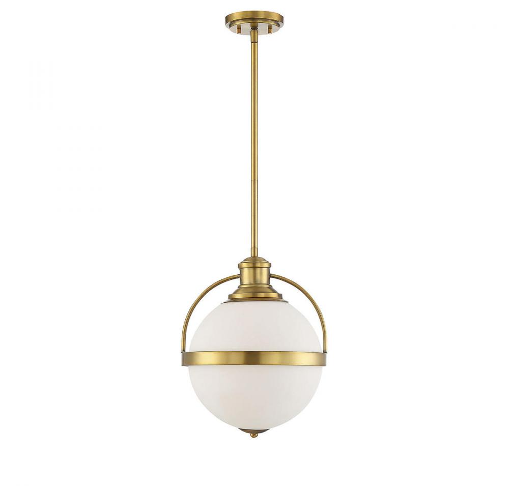 Vintage lighting style is updated for today's interiors in this Westbourne 1-light pendant by Savoy House. A white opal glass shade is accentuated with thoughtful detailing and a rich warm brass finish. Pendants are very versatile and can be used in many different indoor spaces, including kitchens, foyers, offices, great rooms, bedrooms and even bathrooms. The hanging height is adjustable and it can be used on a sloped ceiling. Bulb not included. The warm brass finish can be matched with brass hardware or mixed with hardware in other finishes. Westbourne pendants are a perfect match for transitional style rooms, but great for classic style as well! When you choose a Savoy House lighting fixture, you can be certain you've selected a piece that will withstand the test of time.