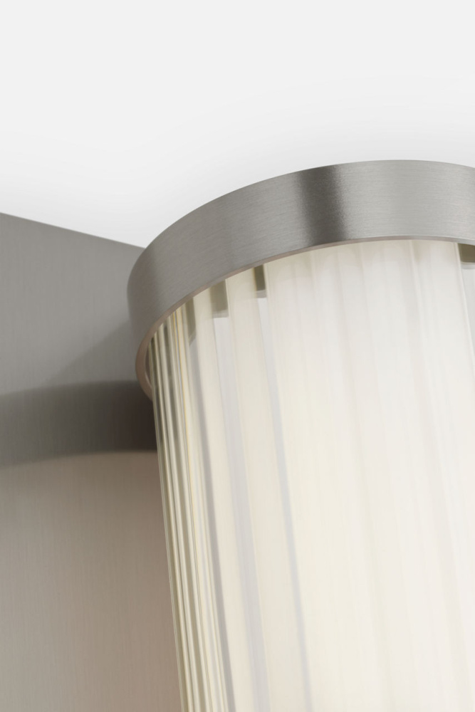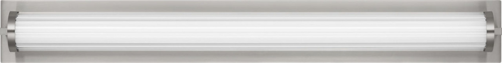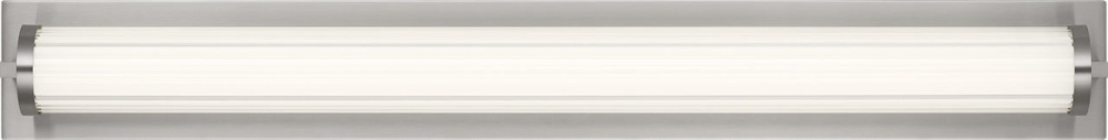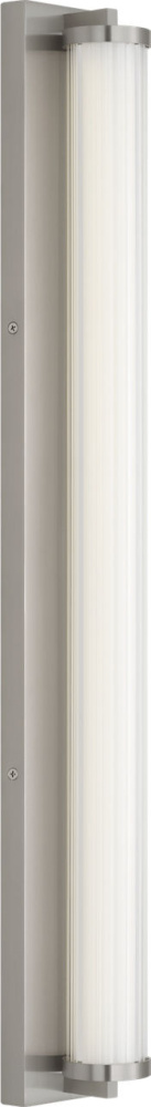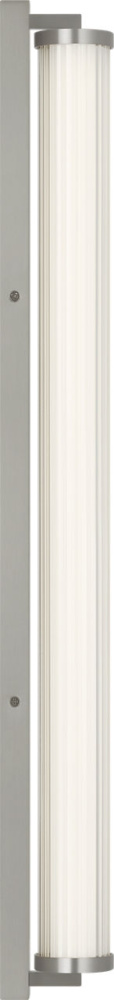 The Weston 34" Vanity combines linear symmetry with material depth, featuring a ribbed glass lens framed by a full-length metal backplate. Dedicated LED technology delivers efficient, ambient light while the textured diffuser enhances clarity and softens glare. suited for horizontal mounting in bathrooms and powder rooms where diffused illumination and visual structure are required.