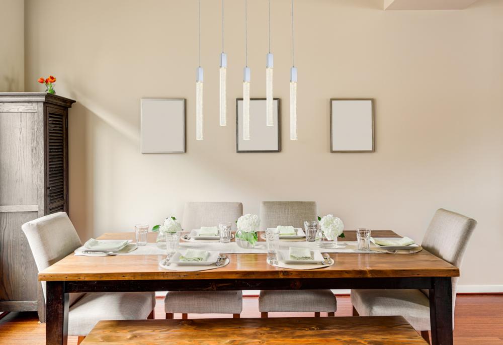 Crystal raindrops floating in a crystal bar balanced in mid-air. Everything about our Weston Collection is ethereal. This collection can be placed in any room of your home as an accent or as a primary feature. When lit up in the evening they are truly an amazing sight, sure to add the wow factor to your home or workplace.