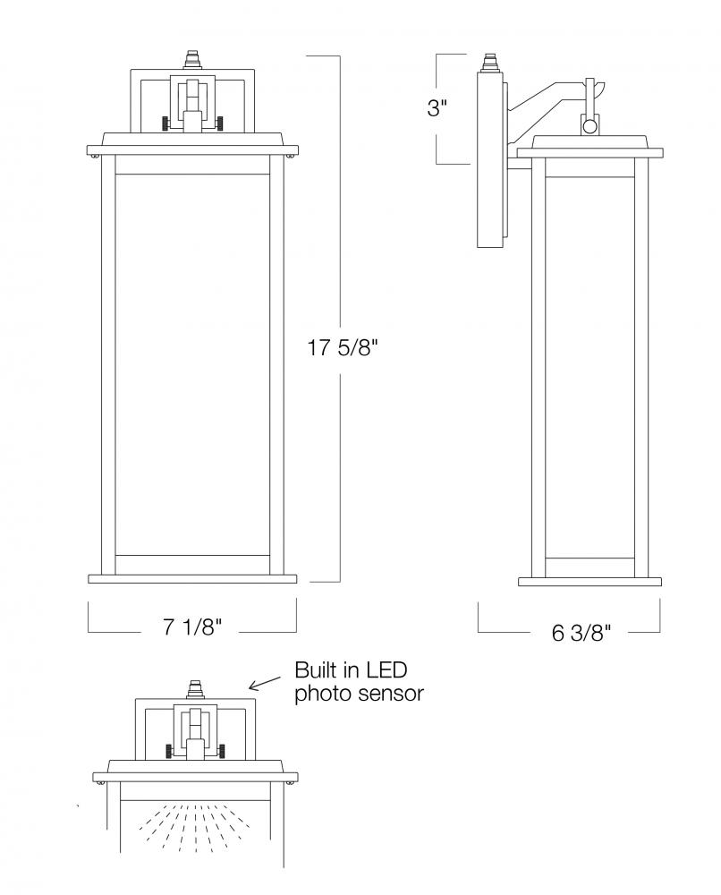 The Weymouth Outdoor sconce has a built in photo sensor that comes on at dusk and turns off at dawn. With angular lines and substantial wavy glass surfaces spreads ample LED illumination