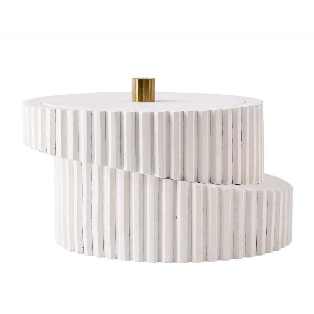 THE WHITTAKER’S GROOVED DESIGN, CREATED IN STACKED, OFFSET DISCS, OFFERS AN INDUSTRIAL NOD REMINISCENT OF MACHINE GEARS. THE CONTEMPORARY CACHE FEATURES A CONTRASTING, NOTCHED ROUND KNOB IN AN ANTIQUE BRASS FINISH. CARVED IN IVORY RESIN, THE ACCENT IS AS VERSATILE AS IT IS STYLE PACKED.