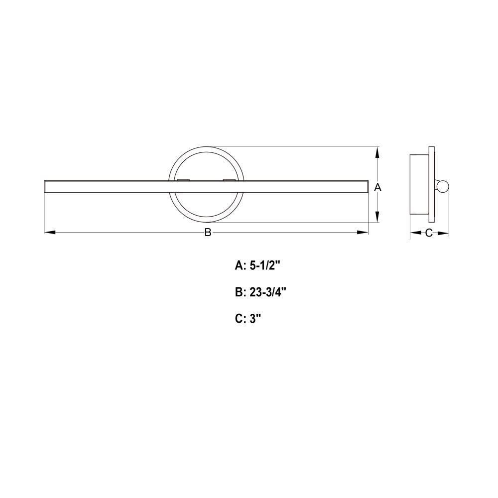 23.75-in W x 5.5-in H x 3-in D with 4.38-in W x 4.38-in H backplate