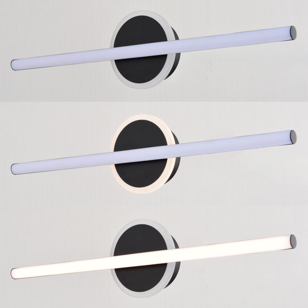 Upgrade your bathroom with the sleek Whittier LED vanity light. Its matte black finish and frosted acrylic shade provide a bright and even glow. The unique night light function on the back plate adds an extra touch of convenience and safety. Perfect for your primary or kids bathrooms.