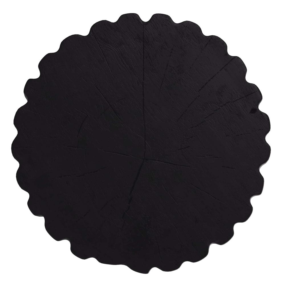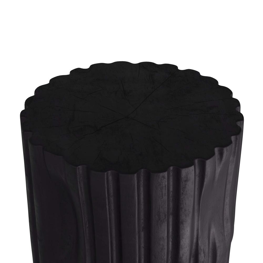 EARTHY AND ELEGANT, THE WILBUR SIDE TABLE IS DESIGNED WITH FLUTING REMINISCENT OF COLUMNS. HAND-CARVED IN SOLID, EBONY TEAK ROOT, THE ORGANIC ACCENT DISPLAYS GAUGED FEATURES—INDICATIVE OF THE NATURAL BEAUTY OF THE MATERIAL—LENDING A STUMP-LIKE, FOUND-OBJECT SENSIBILITY. FINISH WILL VARY.