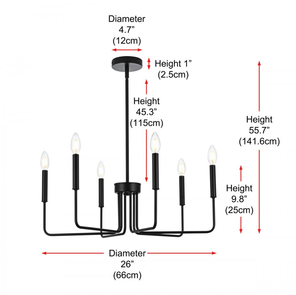 Elevate your home with the Willa 26-inch Pendant Light, featuring a timeless candle-style design for captivating elegance. Carefully crafted with durable iron and ETL listed for safety, our product is a testament to both meticulous craftsmanship and adherence to stringent safety standards, ensuring lasting durability and peace of mind. The six lights effortlessly illuminate an array of spaces, spanning from cozy living areas to inviting hallways. Enjoy easy assembly and low-maintenance upkeep with the open design. Effortlessly illuminate your space without compromising style.