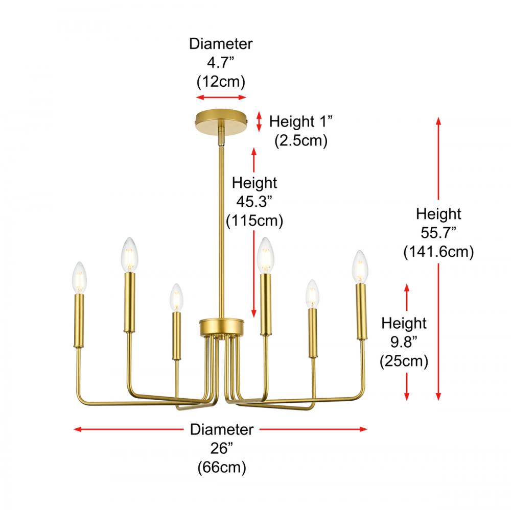 Elevate your home with the Willa 26-inch Pendant Light, featuring a timeless candle-style design for captivating elegance. Carefully crafted with durable iron and ETL listed for safety, our product is a testament to both meticulous craftsmanship and adherence to stringent safety standards, ensuring lasting durability and peace of mind. The six lights effortlessly illuminate an array of spaces, spanning from cozy living areas to inviting hallways. Enjoy easy assembly and low-maintenance upkeep with the open design. Effortlessly illuminate your space without compromising style.
