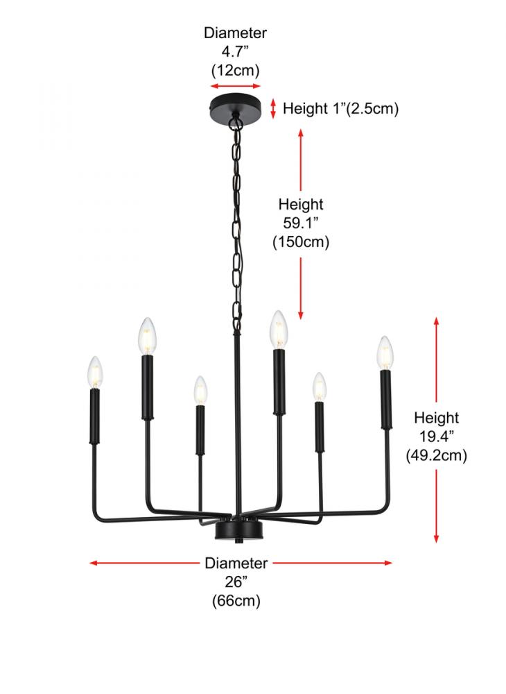 Elevate your home with the Willa 26-inch Pendant Light, featuring a timeless candle-style design for captivating elegance. Carefully crafted with durable iron and ETL listed for safety, our product is a testament to both meticulous craftsmanship and adherence to stringent safety standards, ensuring lasting durability and peace of mind. The six lights effortlessly illuminate an array of spaces, spanning from cozy living areas to inviting hallways. Enjoy easy assembly and low-maintenance upkeep with the open design. Effortlessly illuminate your space without compromising style.