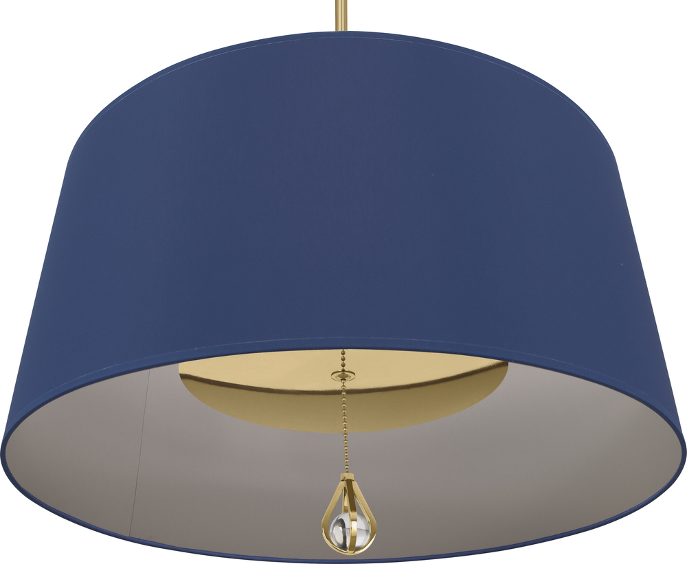 Modern Brass Williamsburg Custis Pendant with Ink Blue Fabric Shade with Carter Gray Lining