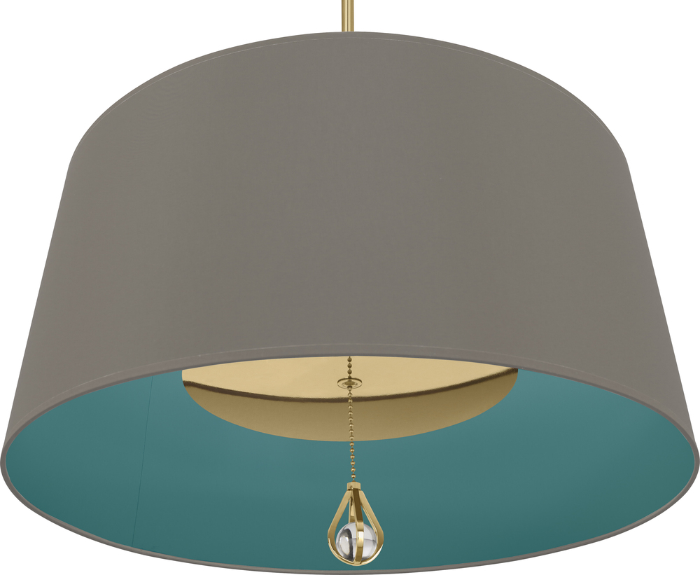 Modern Brass Williamsburg Custis Pendant with Carter Gray Fabric Shade with Mayo Teal Lining