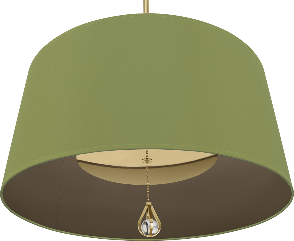 Modern Brass Williamsburg Custis Pendant with Parrot Green Fabric Shade with Revolutionary Storm Lining