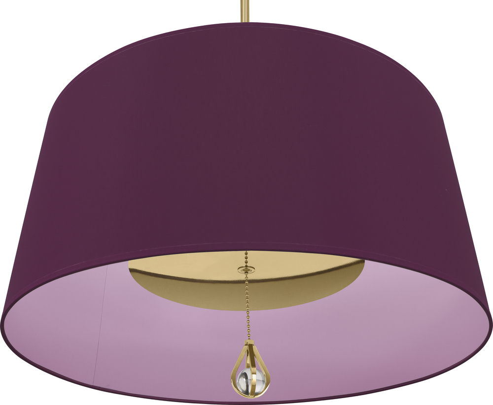 Modern Brass Williamsburg Custis Pendant with Greenhow Grape Fabric Shade with Ludwell Lilac Lining